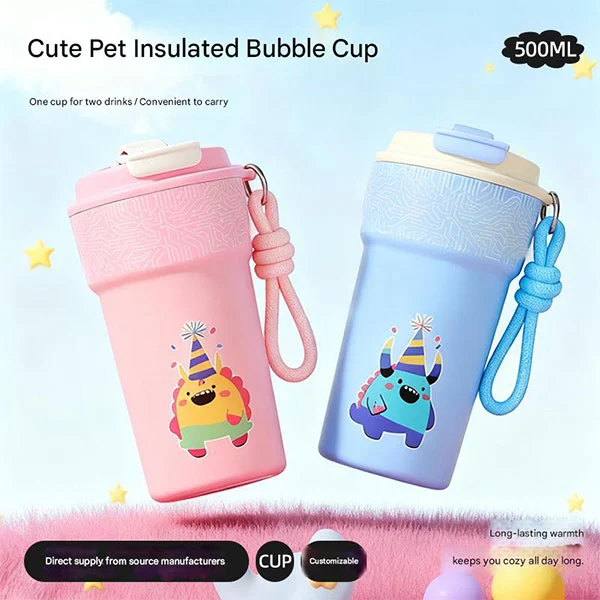 Bizari hii Maalum ina muundo wa insulation ya safu mbili ya chuma cha pua, ambayo inaweza kuweka vinywaji vyenye moto na baridi kwa muda mrefu. Chini ina vifaa vya pedi ya povu isiyoingizwa.