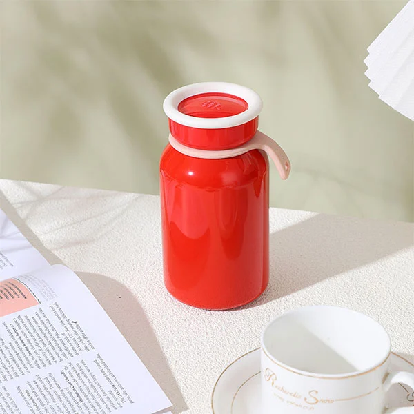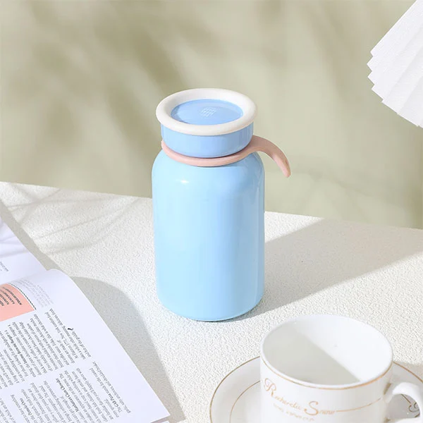 Kuna kamba ya kushughulikia silicone kwenye chupa ya maboksi ya utupu wa 300ml, rahisi kuchukua chupa, na alikuwa akitembea barabarani kama mtu mwenye mwelekeo.
