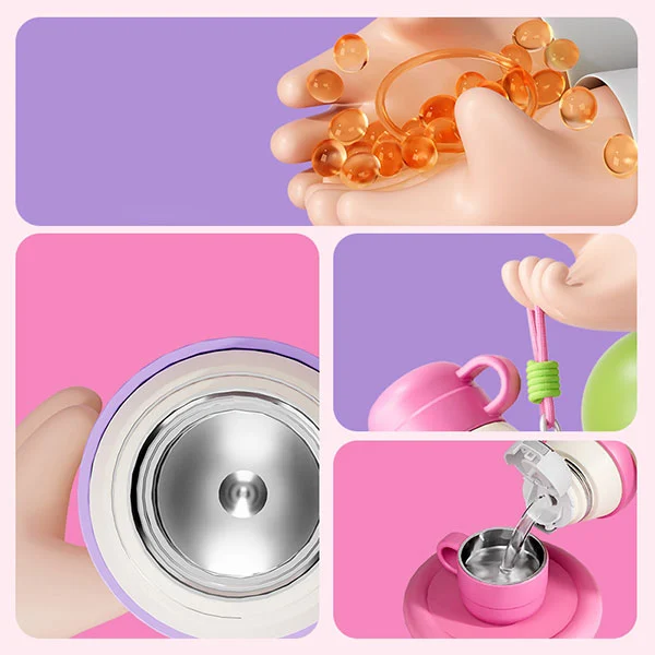 Imewekwa maboksi, inaweza kuweka joto zaidi ya masaa 18, inafaa nje kwa kusafiri, inaweza kufurahia maji ya moto kwa poda ya maziwa .Keep baridi zaidi ya masaa 24, furahiya juisi na maji katika msimu wa joto.
