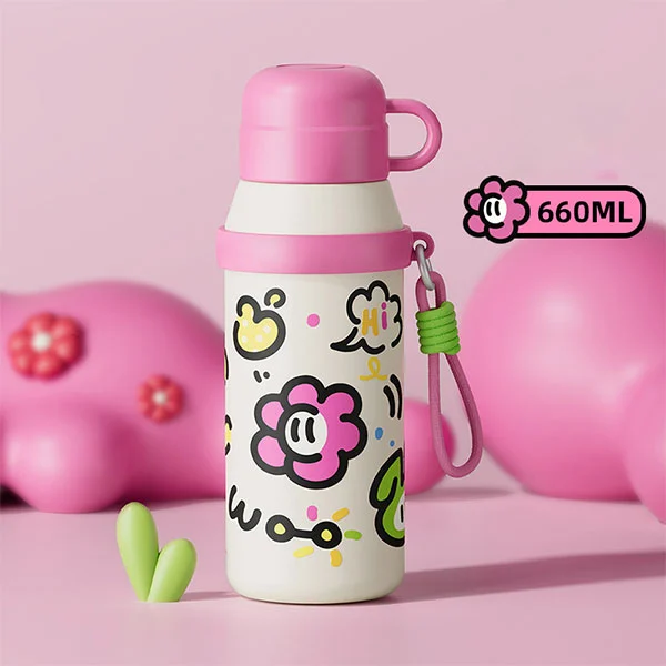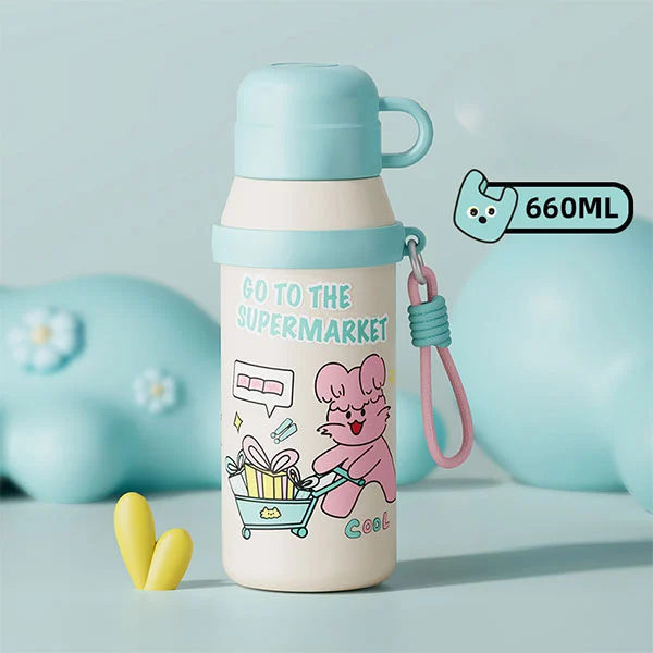 Uwezo wa chupa hii ya maji ya katuni ya pua ya watoto ni 660ml.