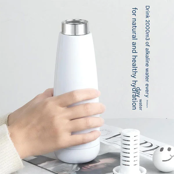 Kwa nini majiKusafisha kikombe cha maboksi? Tumeandaa eneo la kuhifadhi chai kwenye kifuniko, na ndani yake, tumeweka vifaa maalum vya eco -rafiki - chembe za madini za Alps. Chembe za Alps zina utajiri katika vitu kama alumini, magnesiamu, chuma, sodiamu na potasiamu. Vitu hivi vina faida kwa afya na vinaweza kuboresha asidi na alkali ya maji. Unapokunywa maji, maji hupitia chembe hizi kwa utakaso, kuwa alkali kidogo. Hii hufanya maji yako ya kunywa kuwa salama.