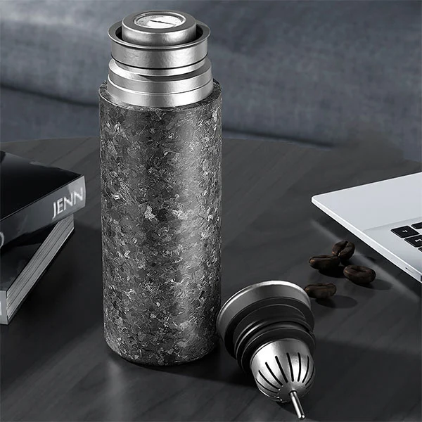 Hii ni chupa ya maji ya titanium na kifuniko cha sumaku iliyotengenezwa na titani, nyenzo za anga, na uwezo wa 410ml. Inayo kazi ya msingi ya kikombe cha kawaida cha Thermos: Utunzaji wa joto la utupu na utunzaji wa baridi. Uhifadhi wa baridi unaweza kudumu kwa masaa 6 na utunzaji wa joto unaweza kudumu kwa masaa 4.
