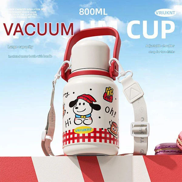 Chupa ya utupu yenye maboksi inaweza kutumika kama chupa ya maji ya lazima kwa watoto kwenda shule au kusafiri, ambayo inafaa sana kwa watoto kwa sababu mikono yao ni midogo na kamba zinaweza kunyoosha mikono yao.